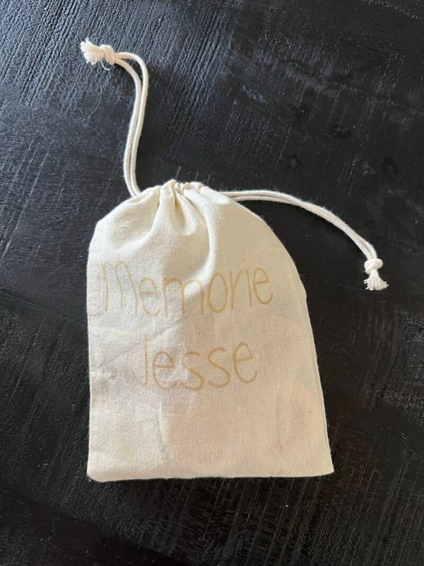 Totaal 18 stuks, in een katoenen zakje met "Memorie <NAAM>